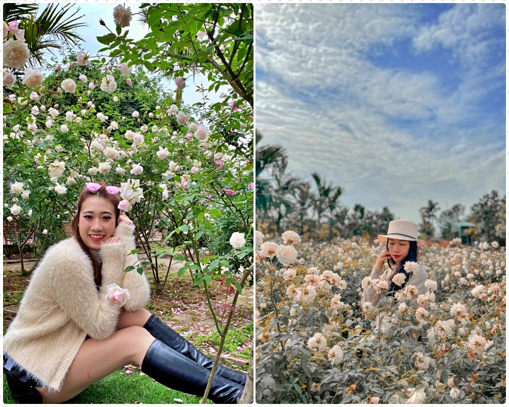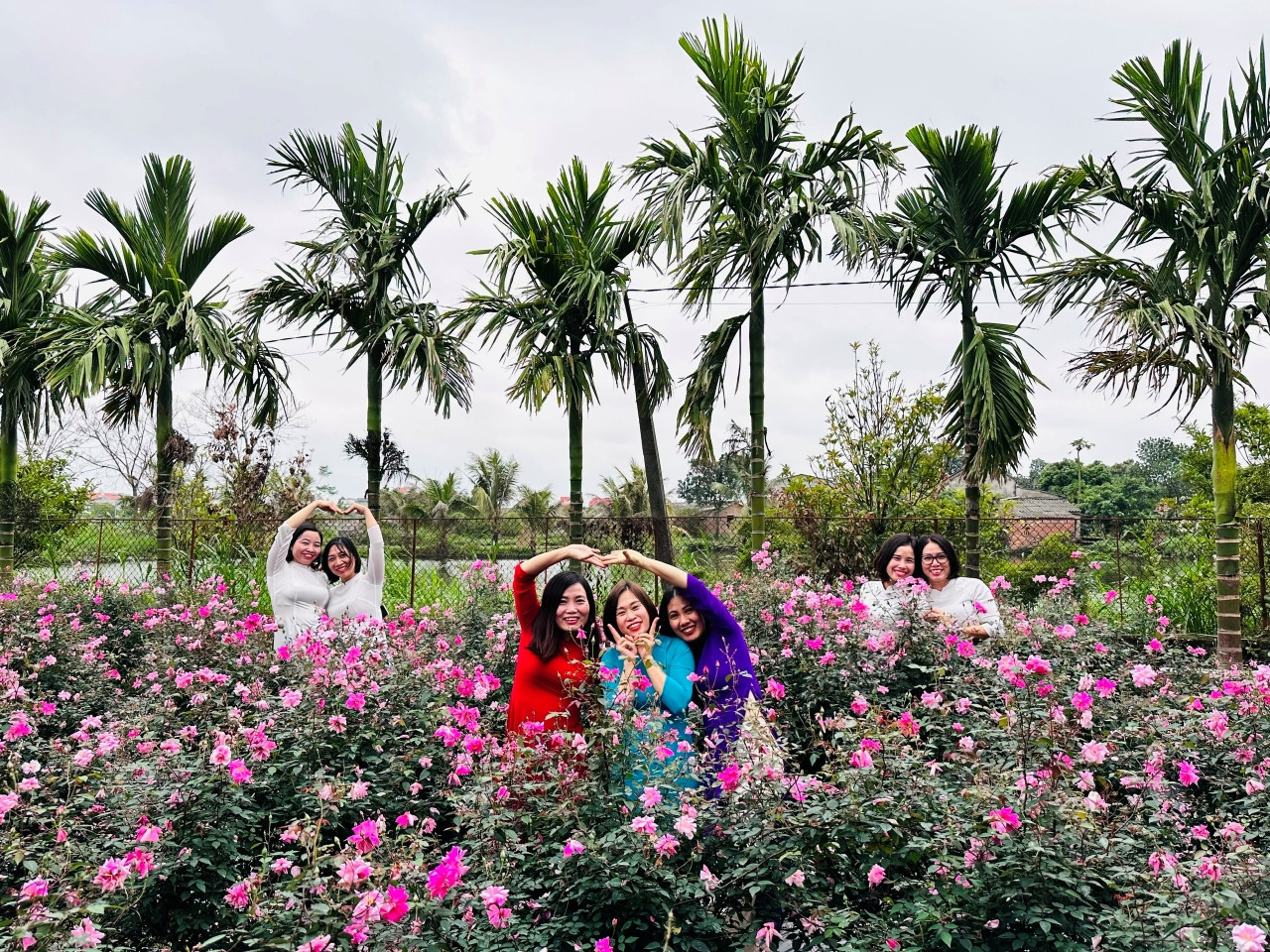 Tan trường, trời đã quá trưa, hai mẹ con chị Trần Thị Quỳnh Diệp (SN 1982, huyện Nam Sách, Hải Dương) vẫn tranh thủ ra vườn hoa hồng rộng hơn 1500m2 chụp ảnh, quay phim.