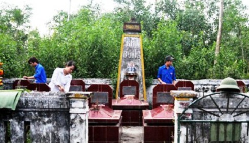 Nghĩa trang chỉ vỏn vẹn 2 chữ "Ghi công" các nạn nhân ở xã Thanh Liên, huyện Thanh Chương. |