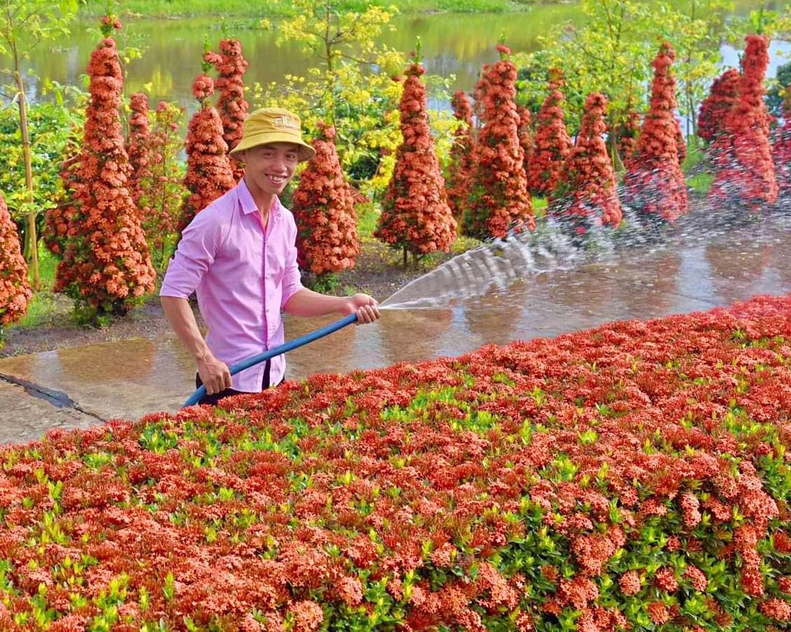 Sau khi định hình được hàng rào bằng những gốc trang dày đặc, Phước bắt đầu tính đến chuyện cho hoa nở đồng loạt đúng vào dịp Tết. Để làm được điều này, Phước trải qua nhiều thời gian tìm hiểu, thử nghiệm.