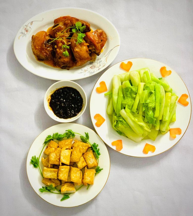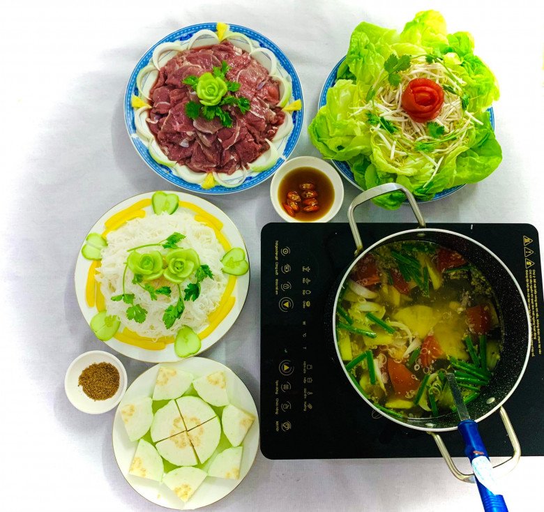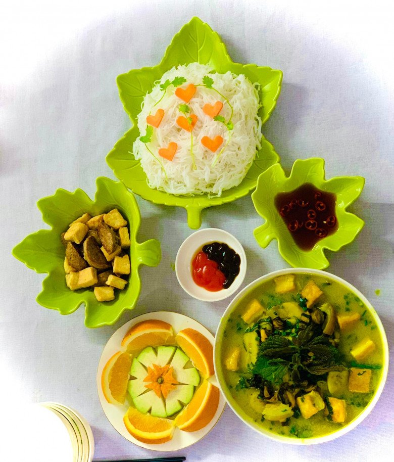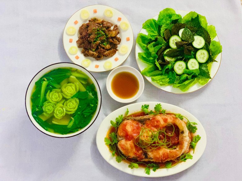 "Mình cũng hay thay đổi thực đơn từ món cơm sang món nước cho cả nhà đỡ cảm giác ngán", chị nói. Ngoài cách xoay vòng thực đơn, chị Mỹ Trang còn hay thay đổi cách bày trí thức ăn theo những nguyên liệu có sẵn, để nhìn món ăn mới lạ và hấp dẫn hơn. Nhờ thế, chồng và con chị vô cùng thích thú mỗi khi giờ cơm bắt đầu.