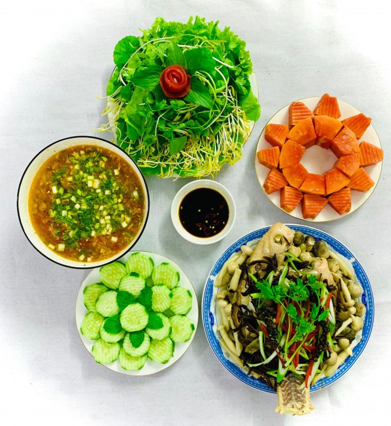 Cũng như nhiều chị em khác, bà mẹ 2 con không chỉ nấu ăn ngon mà còn biết cách cân đối, chi tiêu trong gia đình. Mỗi bữa cơm khoảng 3-4 món của chị sẽ dao động từ vài chục đến 100 nghìn. Hôm nào vượt quá chỉ tiêu thì bữa sau 9X sẽ cân đối ít lại nhưng vẫn đảm bảo dinh dưỡng cho cả nhà.