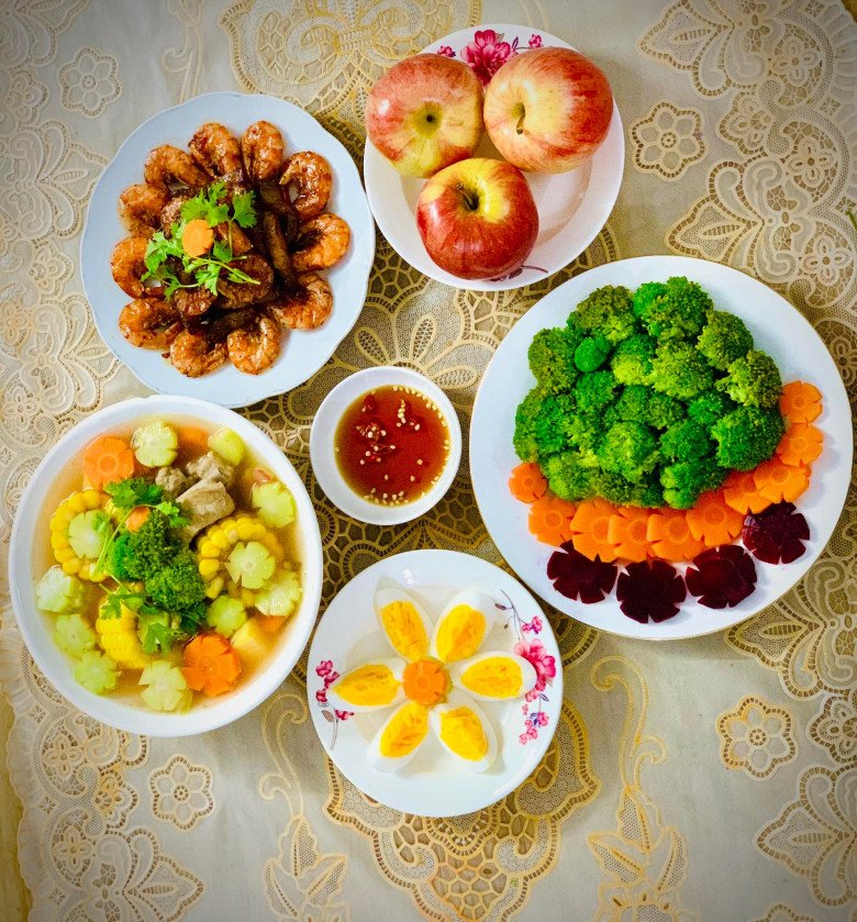 Nhờ đảm đang, khéo léo, lại bày biện đồ ăn gọn gàng, đẹp mắt nên bạn bè, đồng nghiệp của chị hết lời khen ngợi. Nhiều người còn trêu chị sao ăn nhiều thế, "nấu ăn như vậy chắc lương cũng mấy chục triệu".Thế nhưng bà mẹ 2 con cho biết, thực ra mỗi bữa ăn gia đình gồm 4 thành viên của chị đều không tốn kém, chỉ là bản thân bỏ công ra nấu và sắp xếp nhìn chút cầu kỳ đẹp mắt. 9X cũng khẳng định những món mình nấu đều đơn giản, quen thuộc gắn liền với các gia đình Việt Nam.