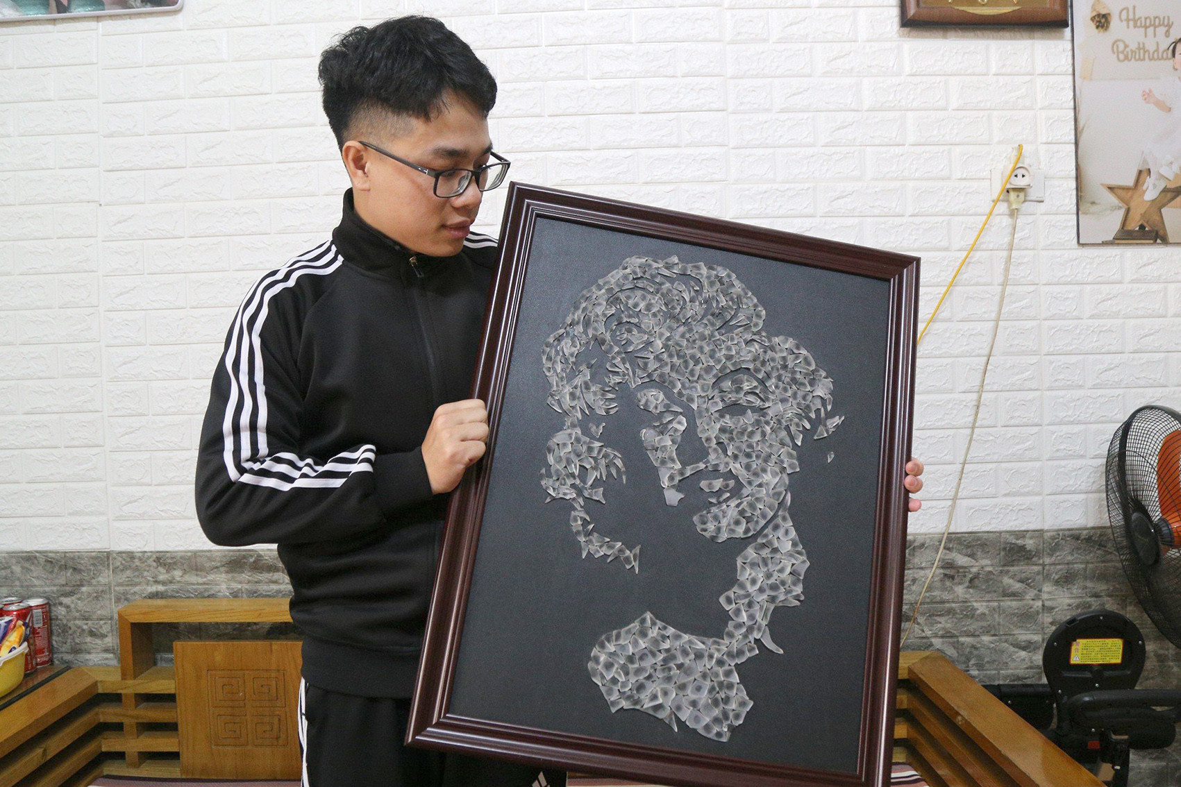 "Thuỷ tinh khi bị vứt ra môi trường thì rất có hại, tôi đem về tái chế thành những món đồ xinh xắn. Những người trước đó bảo tôi hâm dở, tôi đều tặng cho họ tranh làm từ thuỷ tinh", anh Thanh tâm sự.