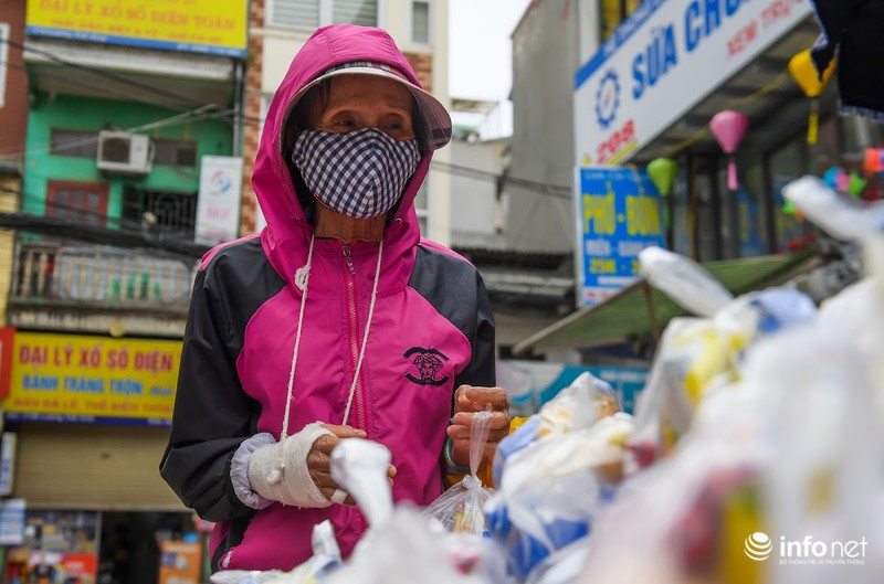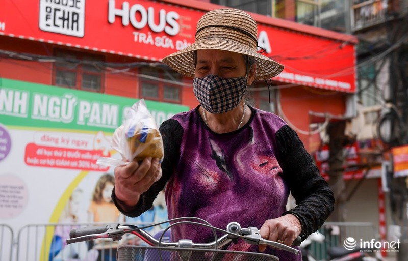 Vui vẻ nhận suất quà, bà Nguyễn Thị Hợi (quận Nam Từ Liêm, Hà Nội) chia sẻ:"Những ngày nay, gia đình tôi cũng không dám ra ngoài, con cháu cũng không đi làm nên cuộc sống rất khó khăn. Tôi thấy hoạt động này vô cùng ý nghĩa, giúp đỡ những người có hoàn cảnh như tôi vượt qua được quãng thời gian này". |