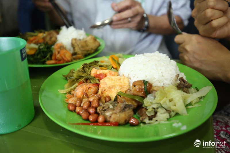 Một phần cơm ở đây tuy chỉ có 2.000 đồng nhưng lại rất đầy đủ chất, gồm: món mặn (Thịt kho, thịt rang, đậu xốt, gà kho, tôm rang), món rau (xào, luộc,), canh (canh bí, canh khoai, canh cải...) và có cả đồ tráng miệng, trà đá...