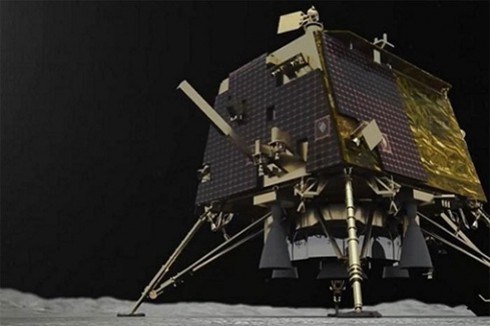 | Mô phỏng tàu đổ bộ Vikram hạ cánh xuống Mặt Trăng. (Ảnh: UPI). |