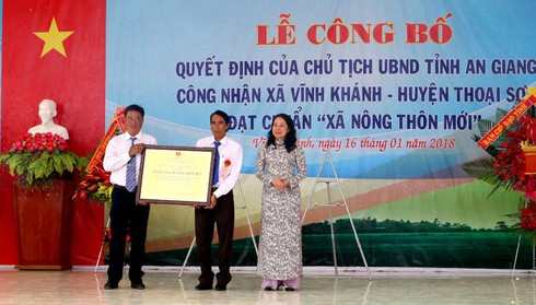 Lễ công nhận xã Nông thôn mới ở Vĩnh Khánh, Thoại Sơn, An Giang. |