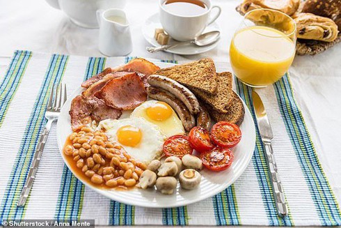 - Thức ăn động vật: ngoài việc ăn một quả trứng, bạn cũng có thể ăn một ít xúc xích, thịt xông khói. Nếu mắc béo phì, mỡ máu cao hoặc tim mạch, bạn có thể ăn nửa quả trứng.