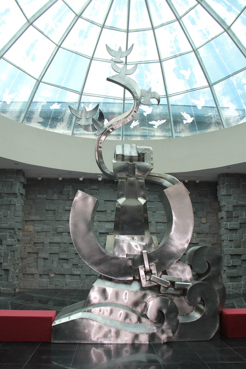 Khi bước chân vào bảo tàng Côn Đảo, bạn sẽ gặp một cụm tượng bằng inox cao 6m thể hiện khí phách của người chiến sĩ cộng sản, khát vọng vươn tới tự do, cách tay vươn cao phá tan xiềng xích gắn liền với cánh chim hòa bình.