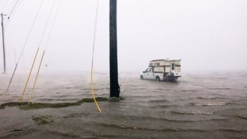Tổng thống Donald Trump đã ban hành sắc lệnh tuyên bố thảm hoạ thiên nhiên trên cả nước, cho phép đưa viện trợ và cứu trợ tới các khu vực bị ảnh hưởng tồi tệ nhất. Ảnh: Chỉ có những chiếc xe như thế này là chịu được sức gió của cơn bão. |