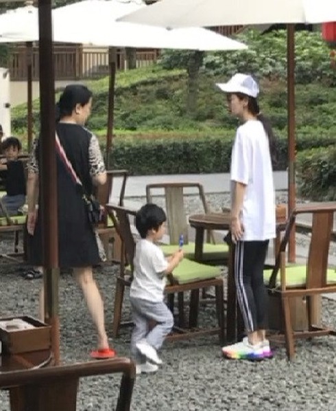 | Angelababy đi chơi cùng con trai Tiểu Hải Miên. |