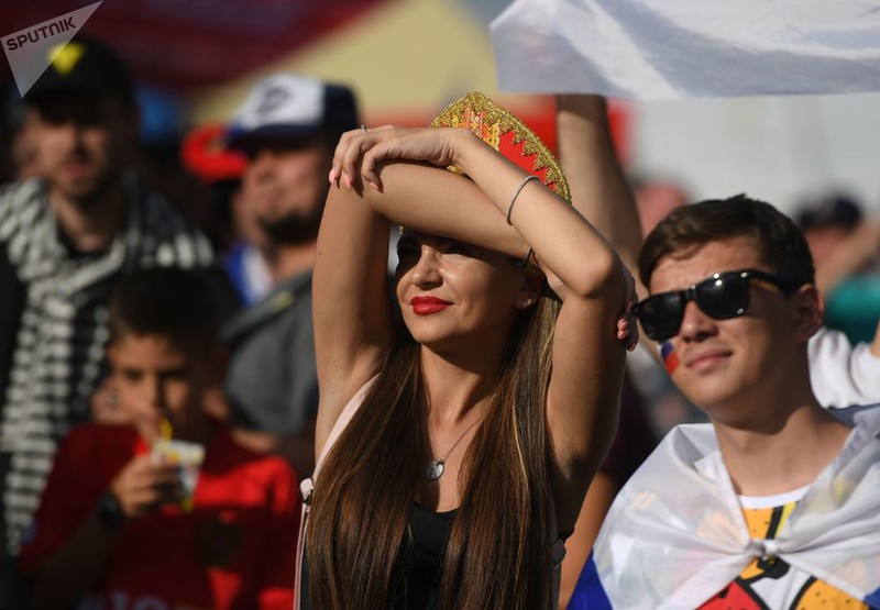Kiều nữ xem trận đấu giữaUruguay và Nga. |