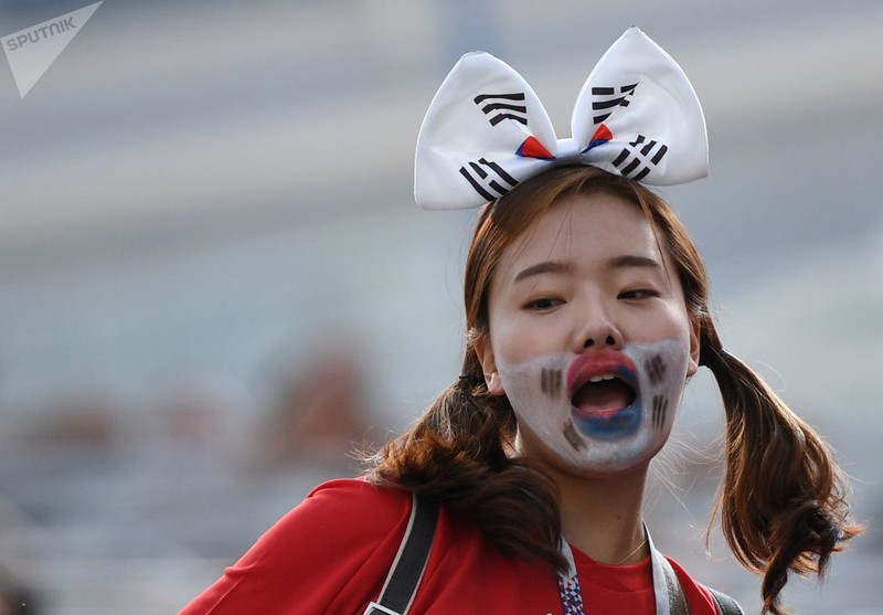 Cổ động viên Hàn Quốc với khuôn mặt được hóa trang đặc biệt. |