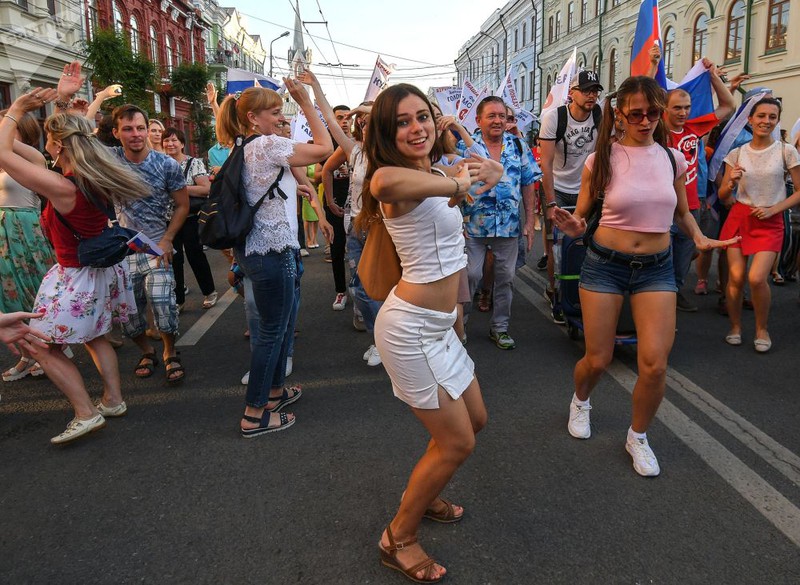 Điệu nhảyflashmob của các fan đội tuyển Nga. |