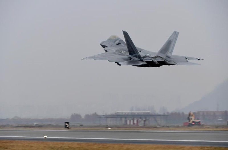 Trong số hơn 230 máy bay quân sự tham gia cuộc tập trận "khủng" của quân đội Mỹ – Hàn có sự góp mặt của 6 chiến đấu cơ tàng hình F-22 Raptor.