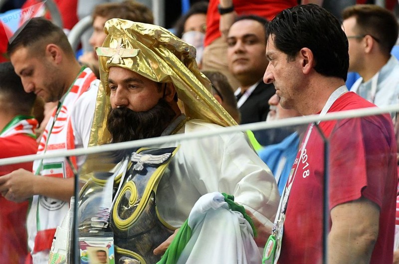 Cổ động viên trong trận đấu giữa Iran và Morocco tại thành phố St. Petersburg. |