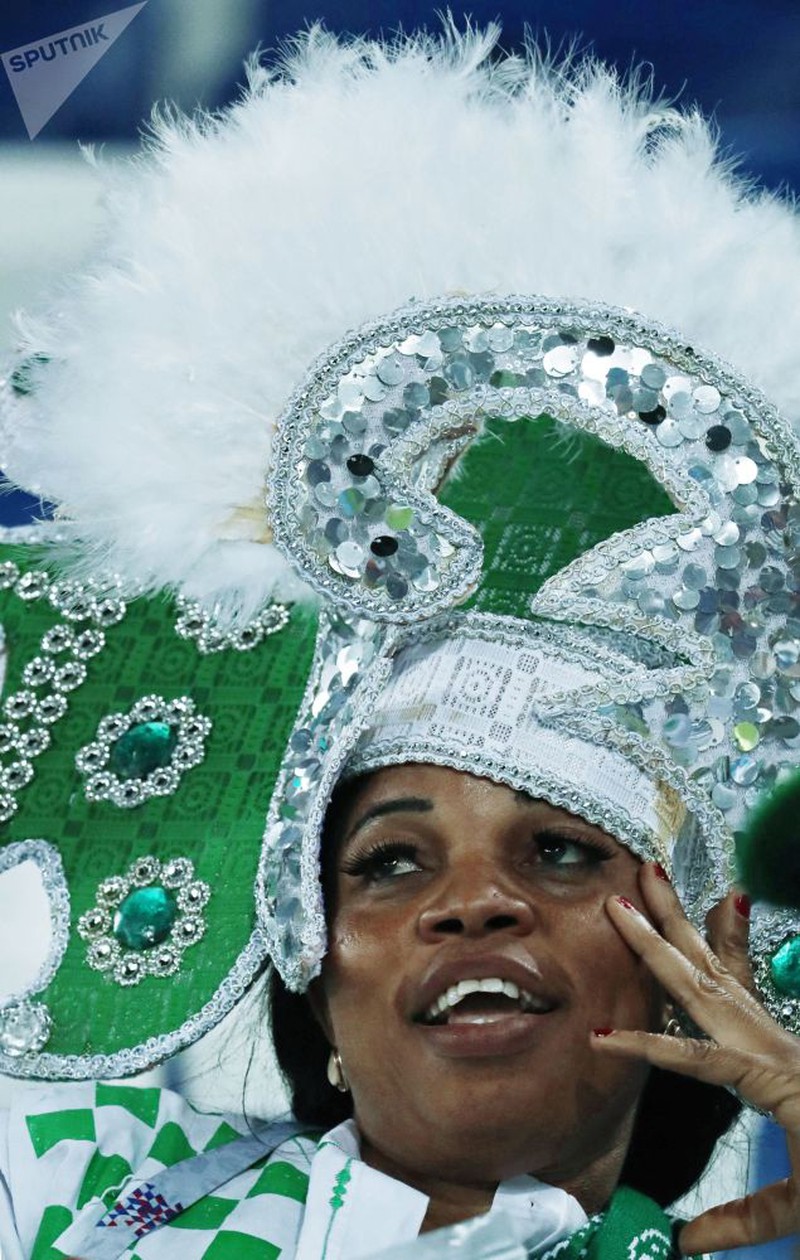 Chiếc mũ cầu kỳ và vô cùng bắt mắt của nữ cổ động viênNigeria. |