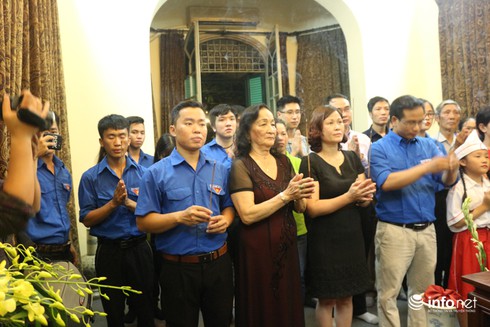 Đông đảo người dân Thủ đô trong đó đa phần là những đoàn viên thanh niên đang cùng nhau dâng hương tưởng niệm Đại tướng Võ Nguyên Giáp. Được biết, trong buổi tối ngày 27/7,gia đình Đại tướng mở cửa khoảng 30 phút để cho người dân vào dâng hương. |