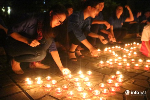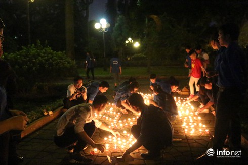 Hàng trăm ngọn nến lung linh của những đoàn viên, thanh niên Hà Nội như thông điệp tri ân các anh hùng, liệt sĩ đã hi sinh cho tự do của tổ quốc. |