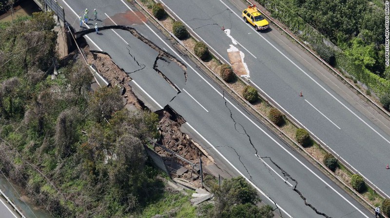 Đường cao tốc Kyushu bị hư hỏng nặng. |