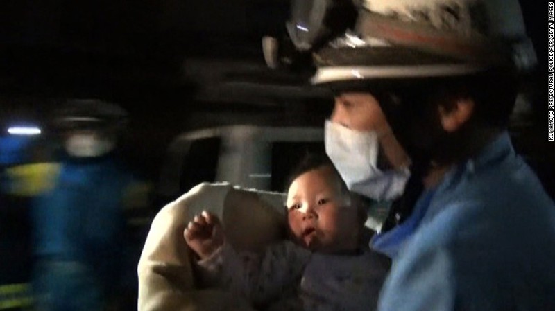 Một bé gái 8 tháng tuổi được cứu sau trận động đất. |