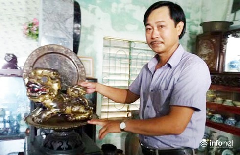 Bởi dành tình yêu và đam mê cho cổ vật nên vợ chồng anh nhiều phen lục đục, “cơm không lành, canh không ngọt”. Chị Hương (vợ anh Long) tâm sự: “Thấy chồng suốt ngày ‘bỏ nhà’ đi biền biệt, thậm chí thế chấp cả sổ đỏ vay tiền ngân hàng để đi tìm cổ vật khiến tôi phát hoảng. Nhưng trước niềm đam mê mãnh liệt của anh ấy, dần dần tôi cũng đổi ý và giúp chồng. Có khi đi buôn bán xa, thấy có vật gì nói là cổ thì tôi cũng cố mua về cho anh ấy dựa trên kiến thức do chính anh ấy truyền dạy”.