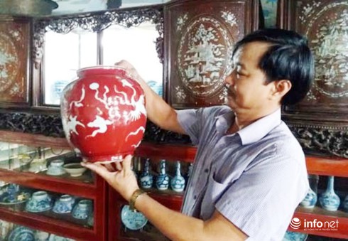 Ngồi bên ấm chè được ủ trong bình gốm có niên đại hàng trăm năm tỏa hương nhài thơm ngát, anh Long kể rằng: Từ nhỏ, anh đã rất thích những họa tiết và hình dáng của các đồ gốm sứ cổ, nhiều lần anh đã lấy đất sét để nặn theo những chiếc bình gốm cổ đó. Sau này lớn lên, qua sách vở và Intenet, anh mới am hiểu những giá trị văn hóa vô giá của cổ vật, nên niềm đam mê qua năm tháng càng mãnh liệt và thôi thúc anh tìm kiếm, sưu tầm.