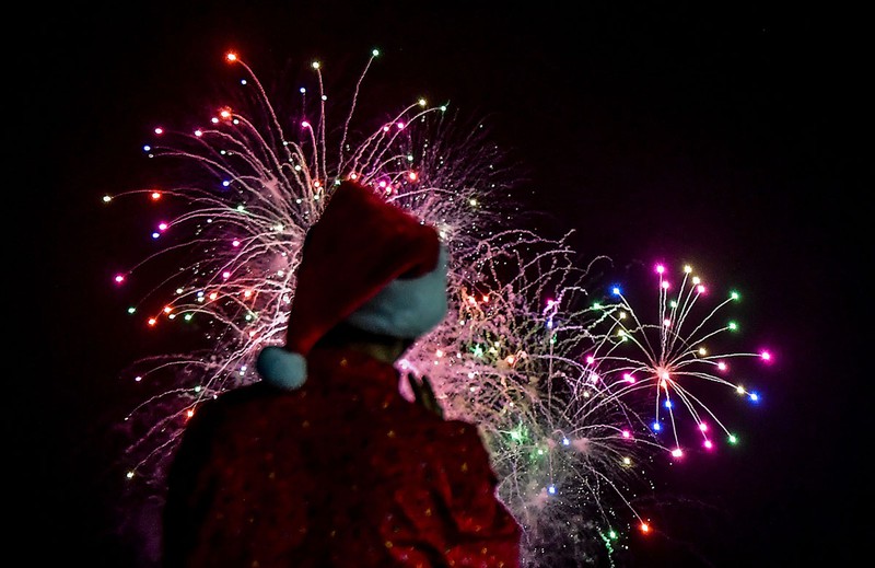 Một người đàn ông xem pháo hoa trong cuộc trình diễn trước Giáng sinh ở thành phố Panama |