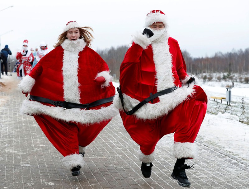 Người dân Belarus mặc trang phục ông già Noel và các nhân vật Giáng sinh khác tham gia lễ hội Chạy Giáng sinh quanh một hồ nước ở Minsk |
