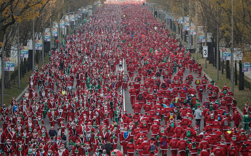 Hàng ngàn người hóa trang thành ông già Noel tham gia cuộc chạy hàng năm tại Madrid, Tây Ban Nha |