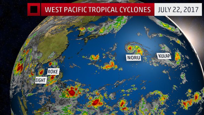 Trong khi đó, ở phía tây Thái Bình Dương có bão Noru, Kulap, Roke và áp thấp nhiệt đới Eight-W đang di chuyển. Áp thấp nhiệt đới Eight-W sau khi vào Biển Đông đã trở thành bão Sonca - tên Việt Nam là cơn bão số 4.