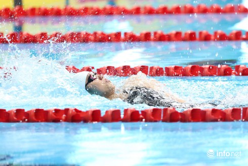 Ánh Viên vừa giành HCV ở cả hai nội dung 200m ngửa và 400m tự do. Trong đó, cô phá kỷ lục Seagames của chính mình tại nội dung 200m ngửa. (Ảnh: Nam Nguyễn) |