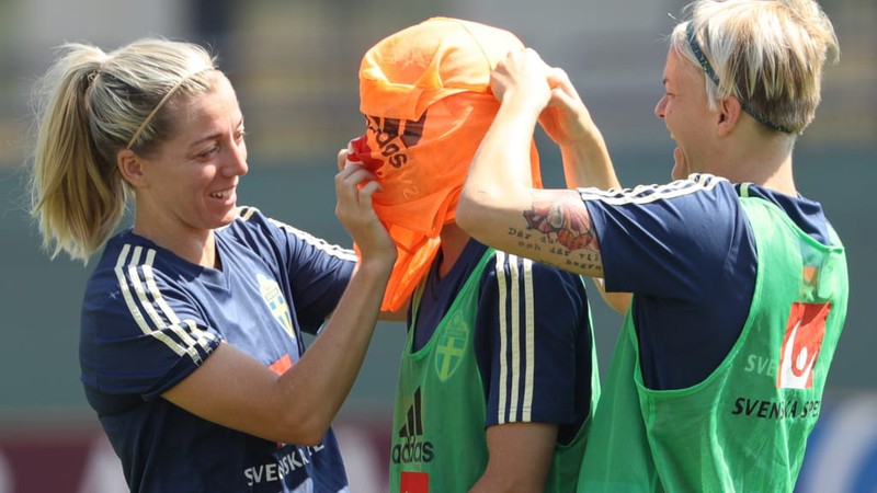 *Phía bên kia chiến tuyến, các cô gái Thụy Điển cũng rất thoải mái trước giờ quyết đấu