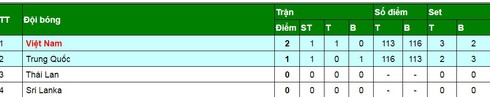 Sau trận đấu đầu tiên, Việt Nam có 2 điểm tạm đứng đầu bảng E |