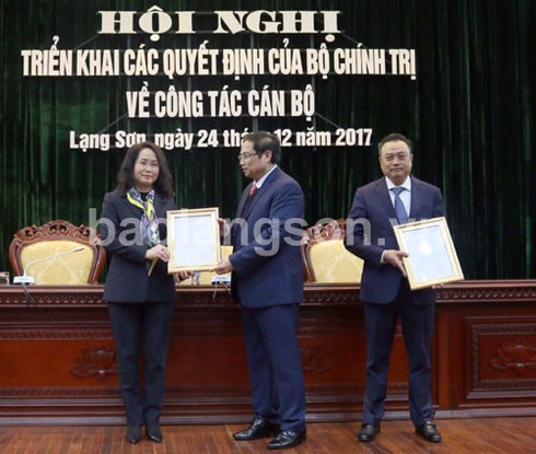 Theo đó, tại Quyết định số 642-QĐ/TW, ngày 22 tháng 12 năm 2017, Bộ Chính trị phân công đồng chí Trần Sỹ Thanh, Ủy viên Trung ương Đảng, Bí thư Tỉnh ủy, Trưởng Đoàn đại biểu Quốc hội khóa XIV tỉnh Lạng Sơn thôi tham gia Ban Chấp hành, Ban Thường vụ và Bí thư Tỉnh ủy Lạng Sơn, nhiệm kỳ 2015-2020 để giữ chức Phó Trưởng Ban Kinh tế Trung ương kiêm Chủ tịch Hội đồng thành viên Tập đoàn Dầu khí quốc gia Việt Nam; tại Quyết định số 643-QĐ/TW, ngày 22 tháng 12 năm 2017 của Bộ Chính trị, phân công đồng chí Lâm Thị Phương Thanh, Ủy viên Trung ương Đảng, Phó Trưởng Ban Tuyên giáo Trung ương tham gia Ban Chấp hành, Ban Thường vụ và giữ chức Bí thư Tỉnh ủy Lạng Sơn, nhiệm kỳ 2015-2020.