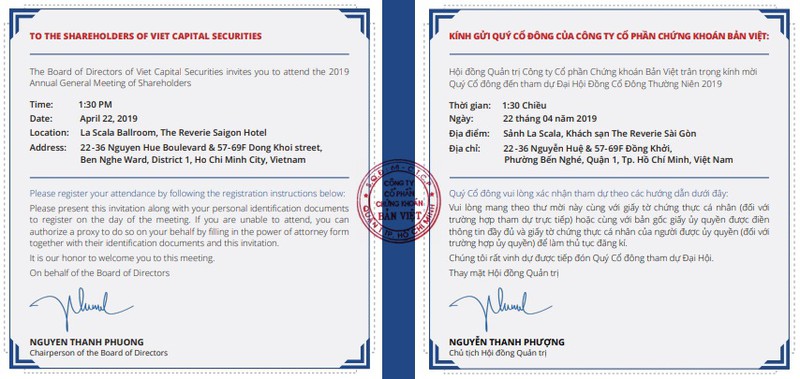 Thư mời ĐHCĐ do bà Nguyễn Thanh Phượng ký. |