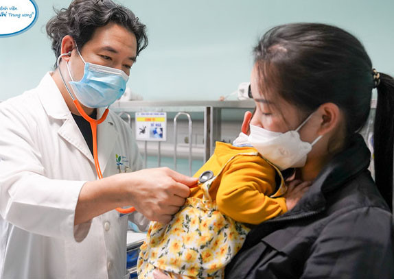 Sau đó, trẻ bị sặc, ho, khó thở, tím tái. Gia đình đưa đi cấp cứu tại bệnh viện huyện, được đặt nội khí quản và chuyển lên Bệnh viện Nhi Trung ương.