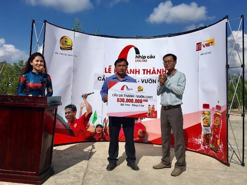 Ông Lê Nguyễn Đức Khôi, đại diện Tập đoàn Tân Hiệp Phát bàn giao cầu Dr Thanh – Vườn Chim cho chính quyền và người dân địa phương. |