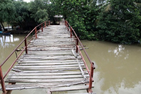 Những cây cầu được lát bằng tràm này đang ngăn cản việc làm ăn, đi lại và phát triển du lịch của người dân Phong Thạnh Tây. |