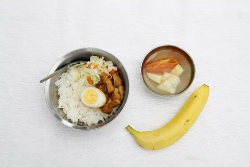 Khẩu phần ăn mẫu được chuẩn bị theo thực đơn của phần mềm Dự án. |