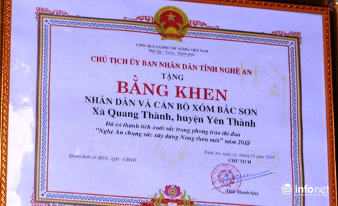 Nhân dân và Cán bộ xóm Bắc Sơn vinh dự được Chủ tịch UBND tỉnh Nghệ An tặng Bằng khen vì có thành tích xuất sắc trong phong trào xây dựng NTM năm 2019. |