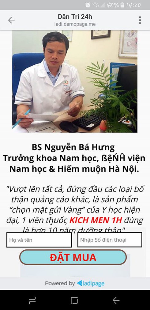 Bác sỹ 'ngã ngửa' khi thấy ảnh mình chềnh ềnh trên trang web bán thuốc bổ thận