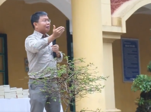 Thầy Nguyễn Thành Nhân trong buổi nói chuyện với học sinh |