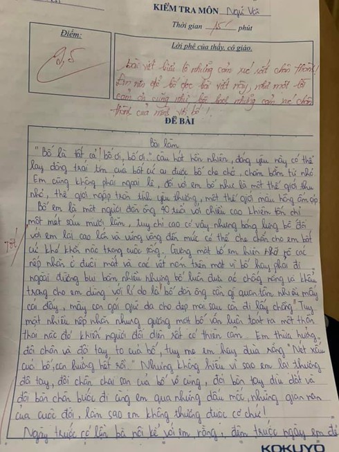 Bài văn tả bố được cô giáo chấm 9,5 điểm khiến cộng đồng mạng phát khóc