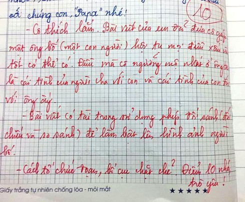 Bài văn viết về người bố đạt điểm 10 của học sinh lớp 5 gây sốt