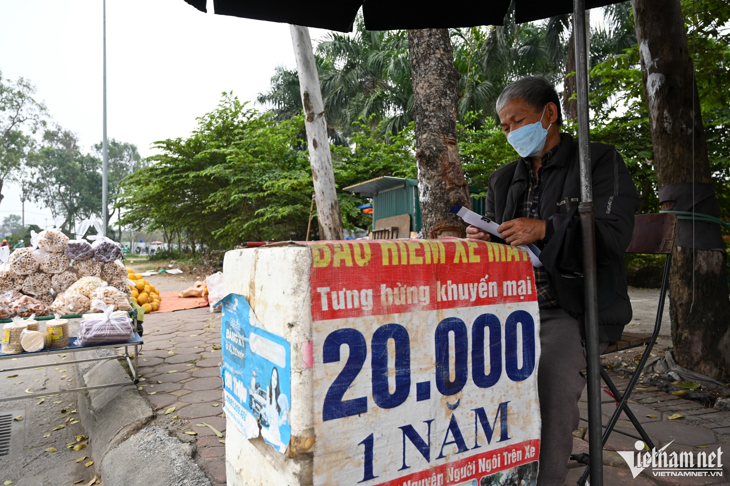 Bảo hiểm xe máy được chia làm 2 loại gồm bắt buộc và tự nguyện. Trong khi bảo hiểm bắt buộc hướng đến việc giúp bồi thường thiệt hại cho bên thứ ba thì bảo hiểm tự nguyện chỉ nhằm mục đích đề phòng trường hợp người điều khiển bị tai nạn.“Hiện nay giá trị sử dụng chưa thực tế khiến nhiều khách ghé vào mua còn phân vân. Họ chủ yếu mua bảo hiểm để đối phó với lực lượng chức năng khi bị kiểm tra vì cho rằng khi được đền bù sẽ phải làm nhiều thủ tục nhiêu khê, mất thời gian mà chưa chắc đã đổi lại được quyền lợi gì”, ông Ngọt (trong ảnh) nhận định.Từ đợt tổng kiểm tra vào tháng 5/2020, thấy nhu cầu tăng cao, bà A. cùng nhiều người khác đã kê bàn ghế bên lề đường Hoàng Sa (huyện Đông Anh) để "phục vụ" từ đó đến nay. “Đợt trước dân còn đổ xô đi mua, bây giờ thì vắng hơn trước, mỗi ngày tôi chỉ bán được 4-5 tờ. Bảo hiểm này chúng tôi mua trực tiếp tại nhà phân phối chính thống và đem bán lại nên đảm bảo là hàng thật", người phụ nữ trung tuổi khẳng định.