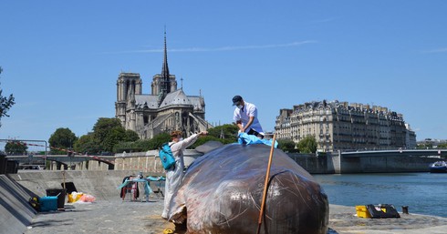 Sau khi dàn dựng ở Paris, nhóm nghệ sĩ tiếp tục thực hiện chuyển cá voi giả tới một thủ đô của một quốc gia châu Âu khác.