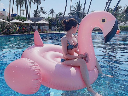 Thường lựa chọn phong cách thời trang kín đáo, trẻ trung, dễ thương nên những khoảnh khắc hiếm hoi Trang Nhung diện bikini nhận được nhiều lời khen ngợi |
