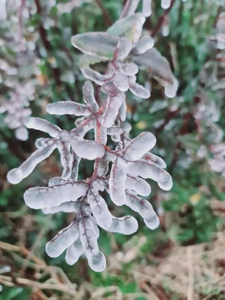 Nhiệt độ xuống rất thấp và buốt giá, băng bám nhiều trên các cành cây và nhà cửa. Đến 10h sáng nay, nhiệt độ ghi nhận xuống dưới 0 độ C và băng giá vẫn tiếp tục đóng trên các cành cây, vườn rau.