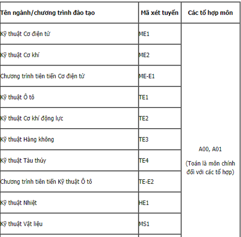 Khi làm hồ sơ dự thi và xét tuyển vào các trường đại học, cao đẳng 2019, thí sinh cần lưu ý mã trường, mã ngành mà mình đăng ký. Khi xét tuyển vào Đại học Bách khoa Hà Nội cần ghi đúng mã trường là BKA còn vào ngành kỹ thuật cơ điện tử thì mã ngành là ME1.